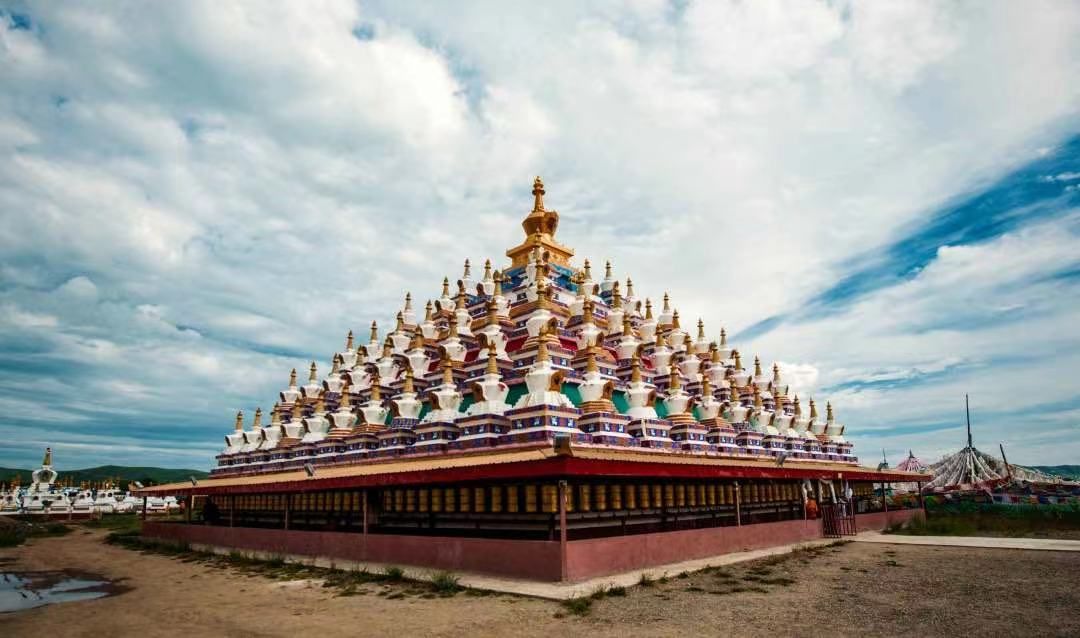 13:30抵达【瓦切塔林】,是为了纪念第十世班禅大师颂经祈福之地,建立了塔林和周围108 座白塔,周围有虔诚的藏民挂起的连绵经幡,蔚为壮观。