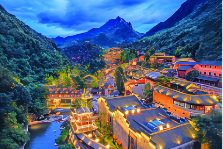 晚上:崖壁灯光真秀:在自然中演出,融合了实景崖壁、灯光秀演、真⼈演艺、互动体验等内容。古建筑⼤观秀:借助全息投影、声效互动等科技⼿段,让游客在观演中体验古建筑的美。