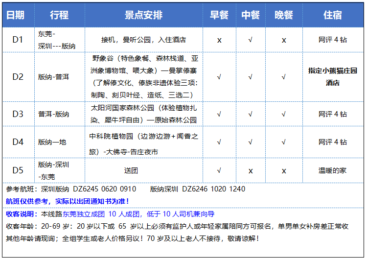 D1:东莞-深圳 - 版纳 餐:晚餐 住:版纳