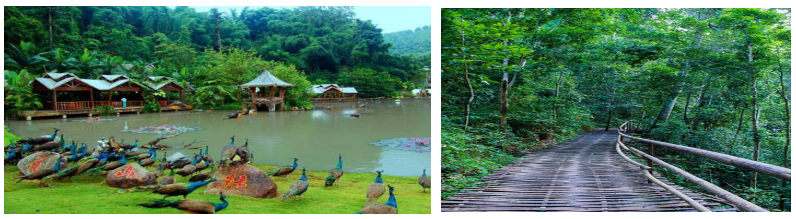 下午乘车前往【原始森林公园】位于景洪市东部,澜沧江以北,是一片原始森林。公园内代步工具是游览车,主要景点有孔雀山庄,当驯养员一声哨响,上百只孔雀越过波光粼粼的湖面,场面非常震撼。另外两站是爱伲山寨和民族风情演艺场,既可以观看民族歌舞表演,也可以参加小型泼水节,很有民族风情。晚餐后,安排入住酒店。