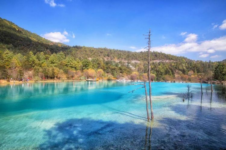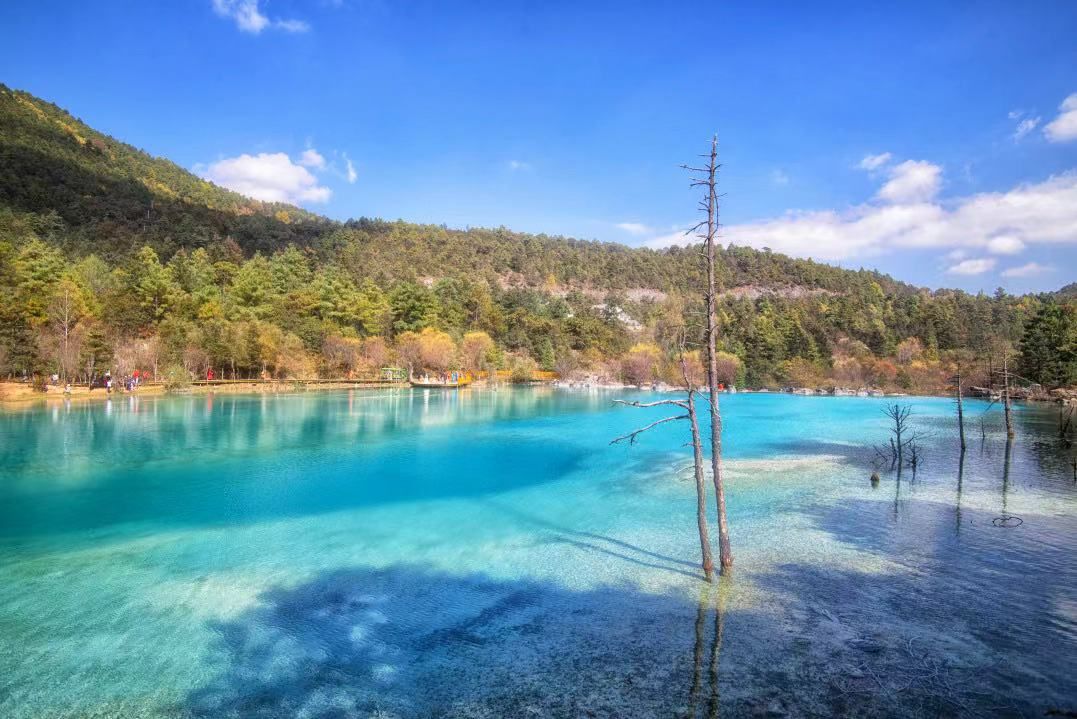 14:00前往【蓝月谷】,早前人们所熟知的(白水河)、蓝月谷又名白水河,在晴天时,水的颜色是蓝色的,而且山谷呈月牙形,远看就象一轮蓝色的月亮镶嵌在玉龙雪山脚下,所以名叫蓝月谷、而白水河这个名字是因为湖底的泥巴是白色的,下雨时水会变成白色,所以又叫自水河。蓝月谷景区可乘坐电瓶车或者徒步(电瓶车50元/人需自理,不属于必乘交通,不含在行程费用包含中,请自行决定是否乘坐)
