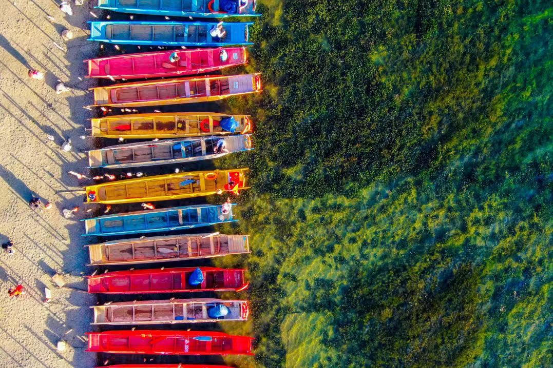 10:00 抵达泸沽湖边,在能见度达12米的清澈湖面上乘坐【猪槽船登岛】,这种小船曾是泸沽湖沿岸居民互相往来的交通工具,我们乘船游览泸沽湖,冬季还可以喂海口哦,