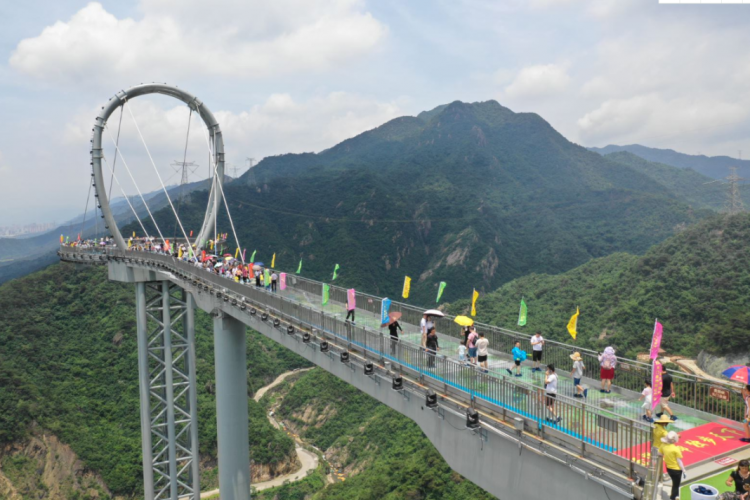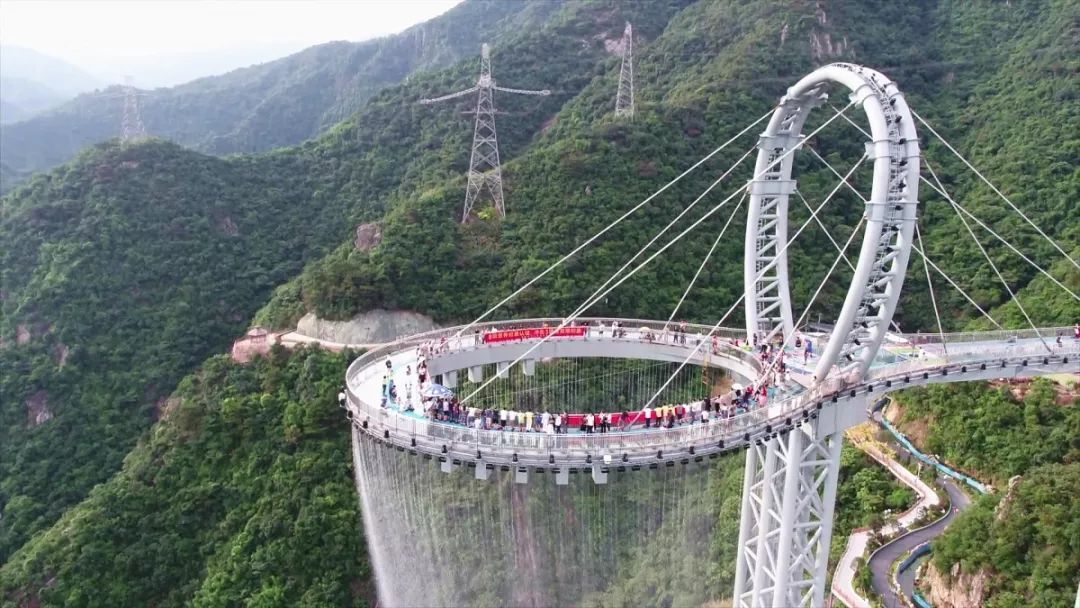 清远黄腾峡的天门悬廊是一个集声、光、玻璃、水瀑于一体的超级玻璃桥廊项目,位于广东清远的黄腾峡景区内。