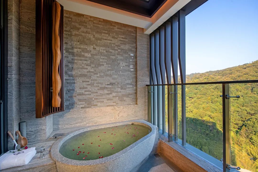 随后下午入住(翁源半溪嘉华温泉酒店)畔山温泉房【房间带私家泡池】【韶关半溪嘉华温泉酒店】坐落于拥有丰富地下温泉水资源的韶关市翁源县坝仔镇半溪村。美泉谷基地毗邻国家生态森林保护区与“北粤大氧吧”;处于同一块地界拥有丰富的负氧离子资源酒店自然天成的生态优势和地理特⾊遵循顺应自然规律、人合一的养⽣理念旨在为宾客提供自然舒适、愉悦多彩健康养生的绝佳休闲度假体验装修简约雅致,温馨舒适,色彩明亮清新客房配备高端智能控制门锁及语音客控系统奢华慕思寝具、知名高档棉织品65寸⾼清液晶电视、免费Wi-Fi覆盖;无限次客房阳台大理石温泉泡池;在溶洞温泉泡汤的同时,看峰峦叠翠山涧叮咚,似仙境瑶池,好不惬意叠层温泉,上中下三层叠式多样,观日落晚霞看星空感受当下即是永恒;还有多个其它特色汤池选择,瑶浴池、人参池、咖啡池、动感活力池、五加皮池等,每个泡池星罗棋布,错落有致,满足你不同的泡泉需求
